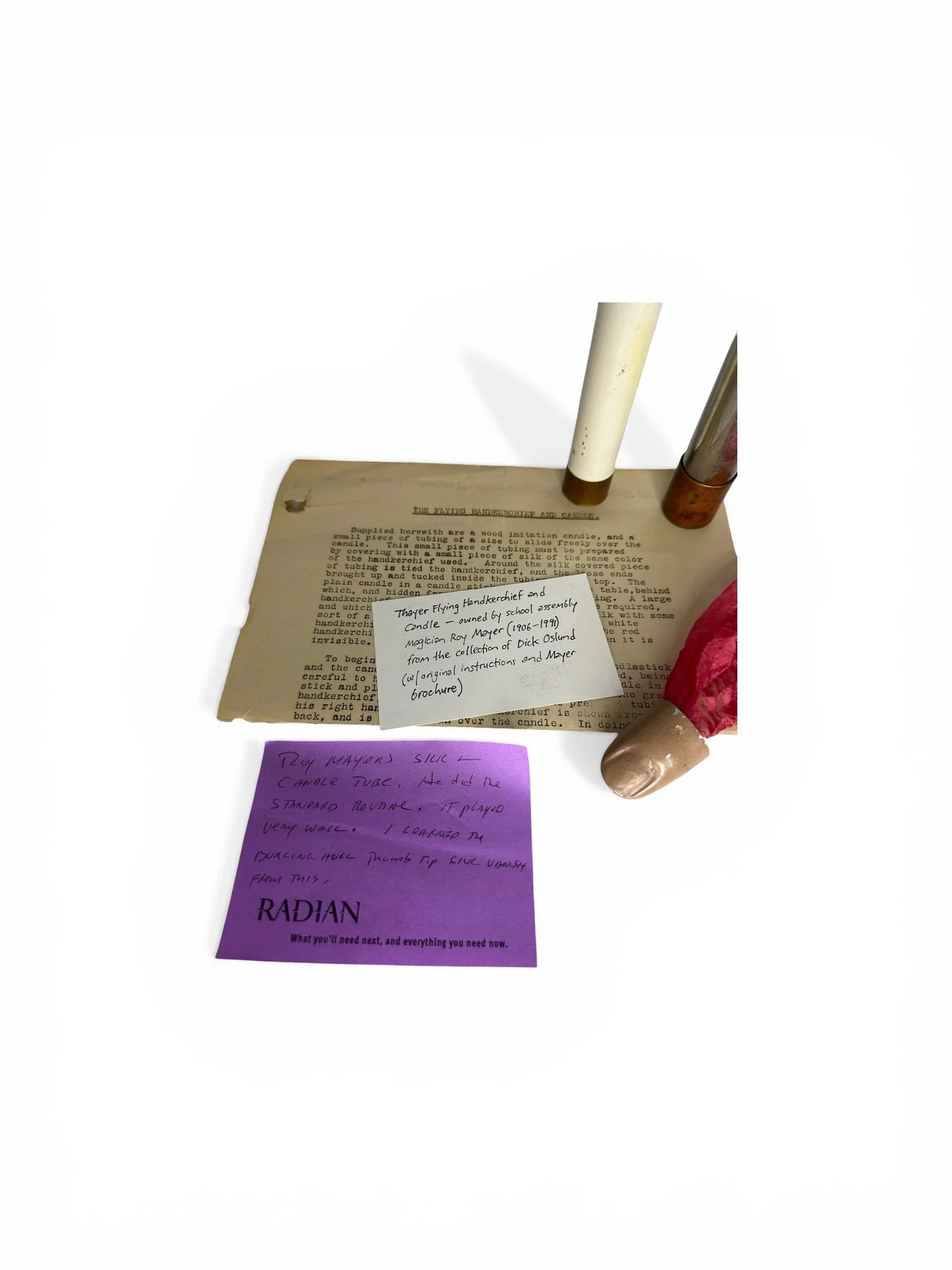 Shop › Thayer “Flying Handkerchief & Candle” Image 1 of 2 Image 2 of 2 Thayer “Flying Handkerchief & Candle” $50.00 Belonged to Roy Mayer. Overall fair to good condition. Circa 1940. Add To Cart Added! Belonged to Roy Mayer. Overall fair to good condition. Circa 1940. You Might Also Like Quick View Owen Magic Supreme “Rattle Box” $150.00 Quick View Thayer “Pea Can” Replacement Labels $10.00 Quick View Owen Magic Supreme “Handkerchief Frame” $149.00 Quick View Owen Magic Supreme "Crystal Card Catch" $425.00 Quick View Owen Magic Supreme “Mirage” $395.00