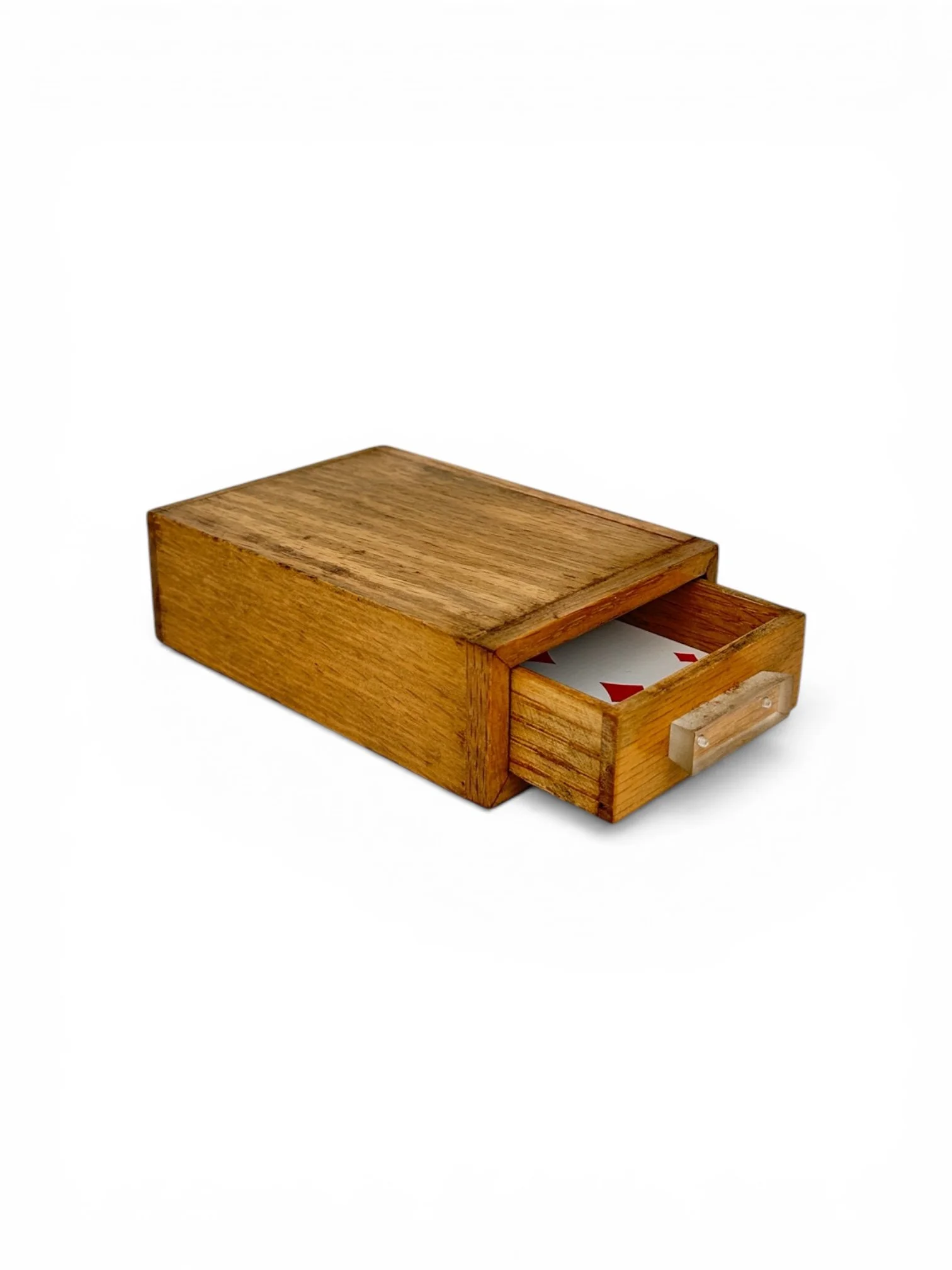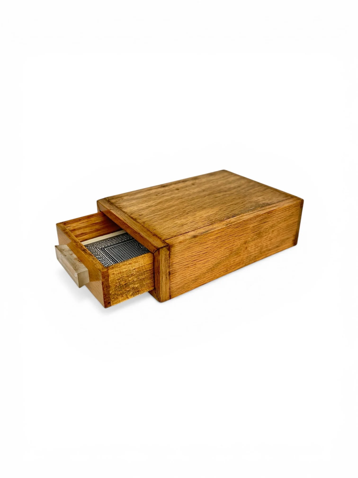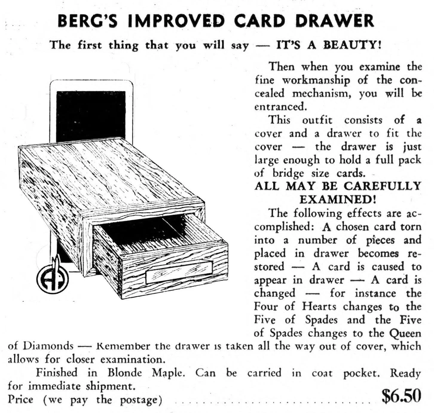 When the 4 cards are removed from the envelope and fanned, the spectators see there are 3 face down and I face up. The card facing up is the selected king and when turned over, it is the only one of the 4 cards with a different colored back.